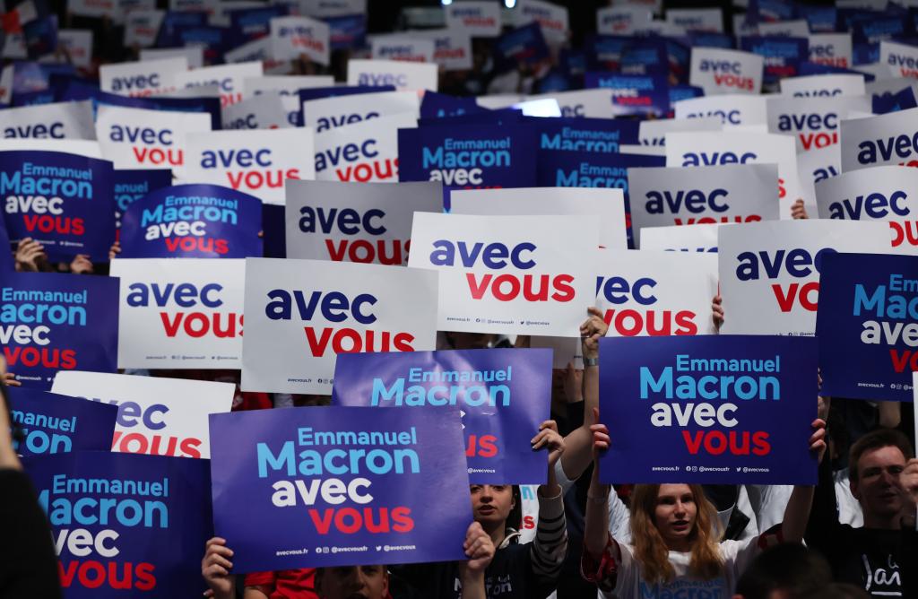 4月2日,支持者在法國巴黎附近的拉德芳斯體育館參加馬克龍競選集會。新華社記者高靜 攝