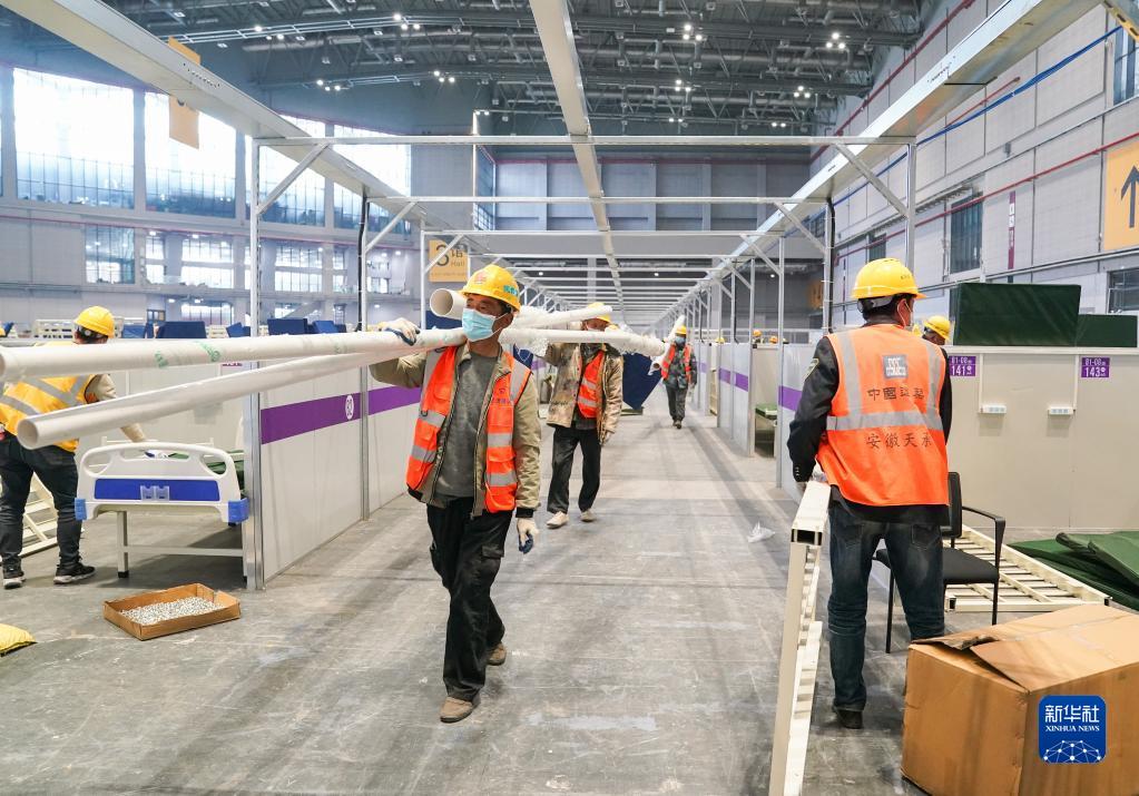 從技術上講,方艙施工并不難。但廣闊的施工面積、大量的床位、極短的工期,還要保護會展中心的原始結構,建設團隊必須在做好防疫的前提下,協調好各工種,做到充分高效調配生產物資和施工人員。