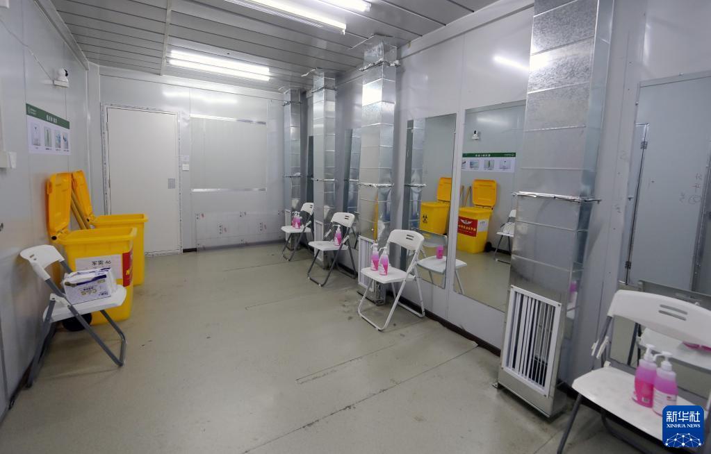 4月9日,醫務人員通道內防疫設施已經準備就位。新華社記者 李賀 攝