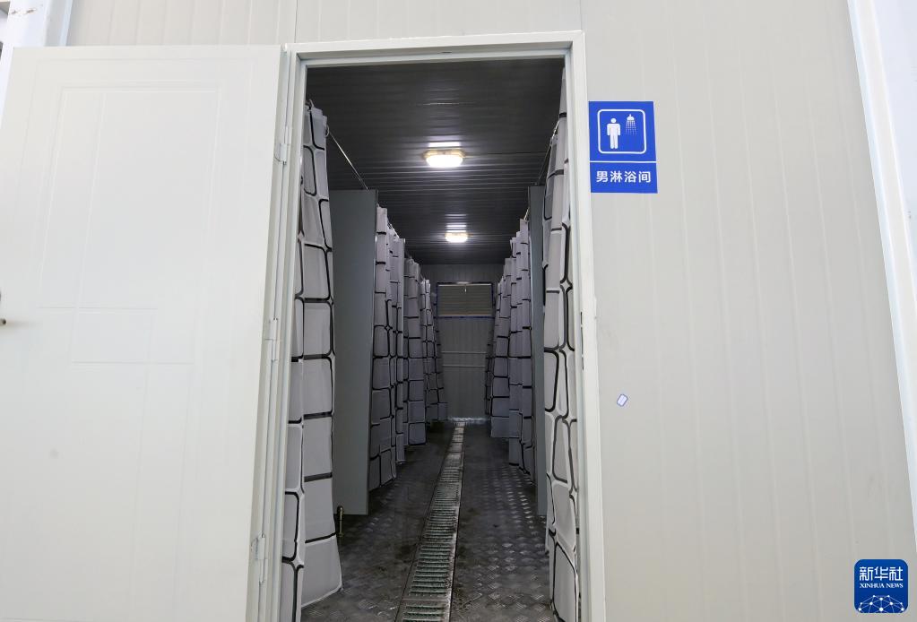 4月9日,醫務人員工作區的淋浴間已經準備就位。新華社記者 李賀 攝