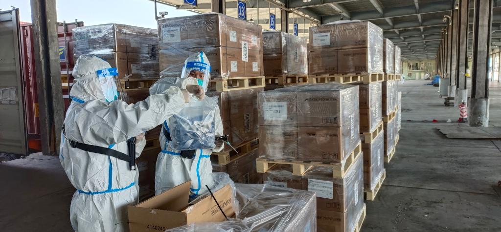4月6日,在接到江蘇海安市人民政府援滬物資運輸申請后,海安物流基地及時與當地12家農資、醫療企業對接。(受訪者供圖)