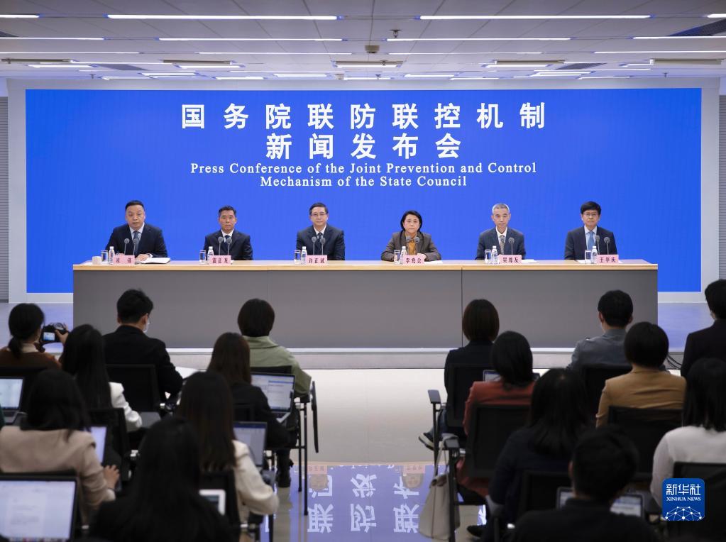 4月12日,國務院聯防聯控機制在北京召開新聞發布會,國家發展改革委、商務部、國家衛生健康委相關司局負責同志和有關專家出席,介紹從嚴從實抓好疫情防控工作有關情況,并回答媒體提問。新華社發(楊佳 攝)