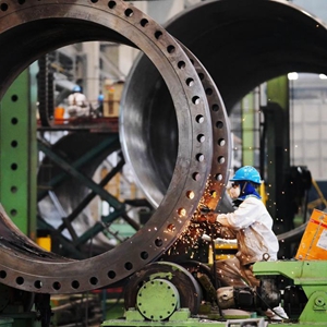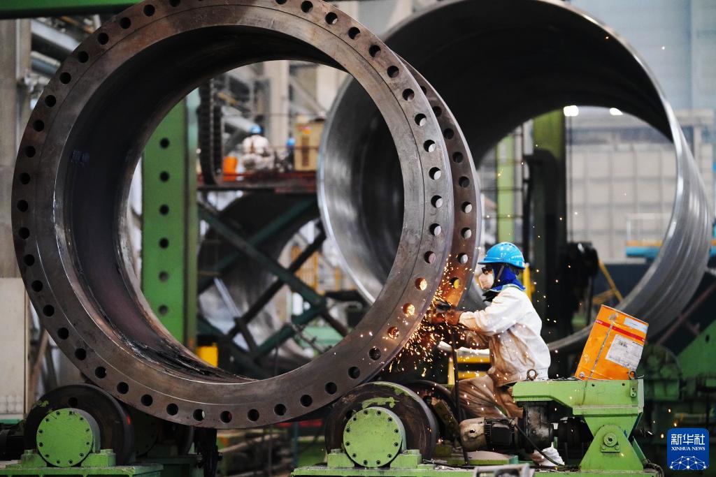 4月14日,在哈電集團哈爾濱鍋爐廠有限責任公司車間,工人在進行生產作業。新華社記者 王建威 攝