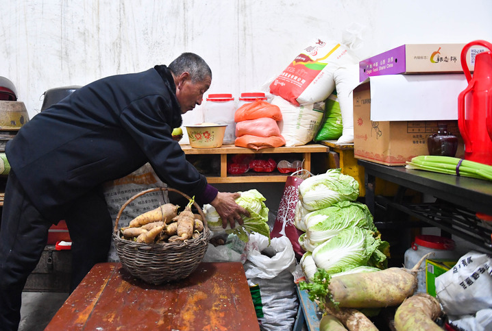 段村村民蔡文明整理自家產的蔬菜。(新華社記者柴婷攝)