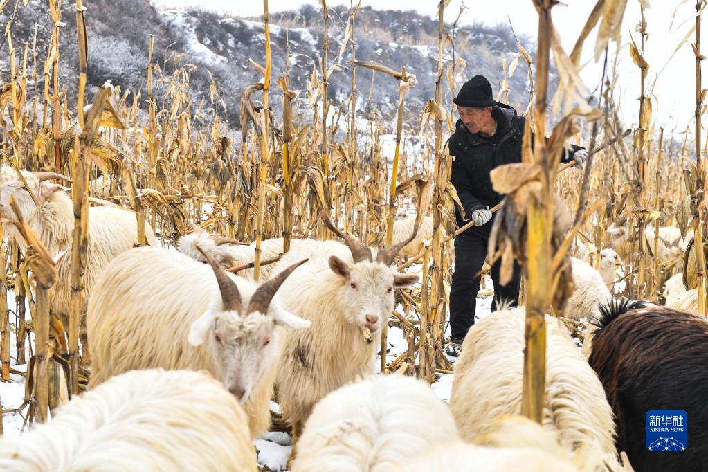 在山西省汾西縣僧念鎮段村,脫貧戶蔡文明在山上放羊(1月27日攝)。新華社記者 柴婷 攝