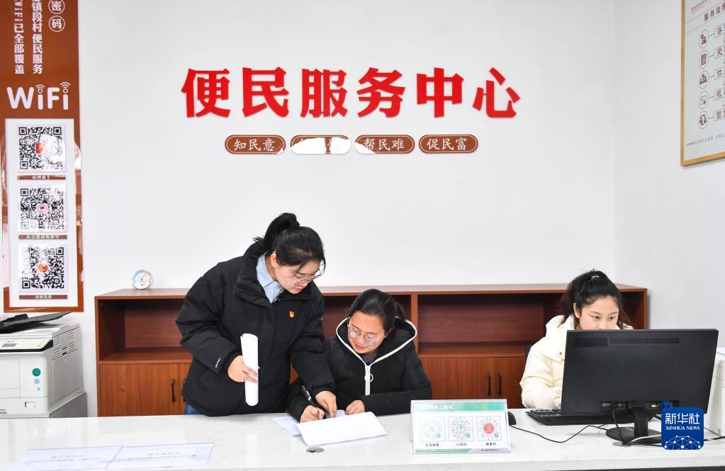 在山西省汾西縣僧念鎮段村,村黨支部書記李佳莉(中)在村委會處理事務(1月27日攝)。 新華社記者 柴婷 攝