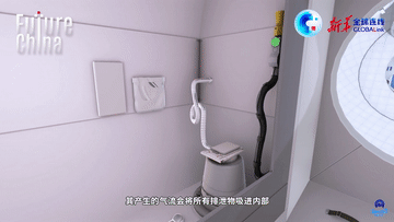 衛生間里的馬桶是專為航天員研制的。它內部安裝了一個風機,其產生的氣流會將所有排泄物吸進內部,并將其抽真空封裝存儲。