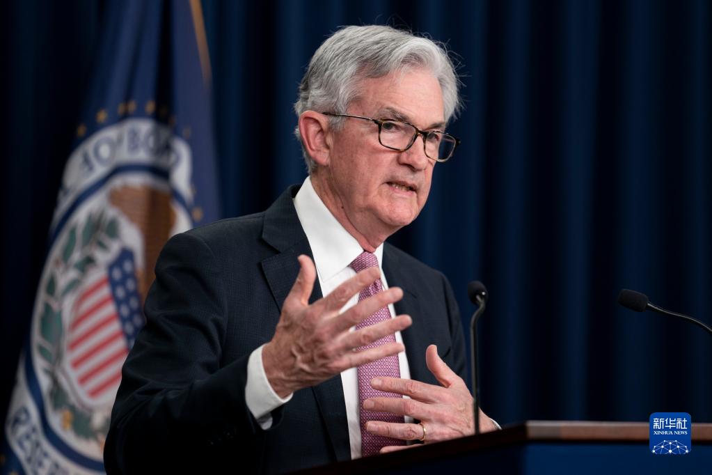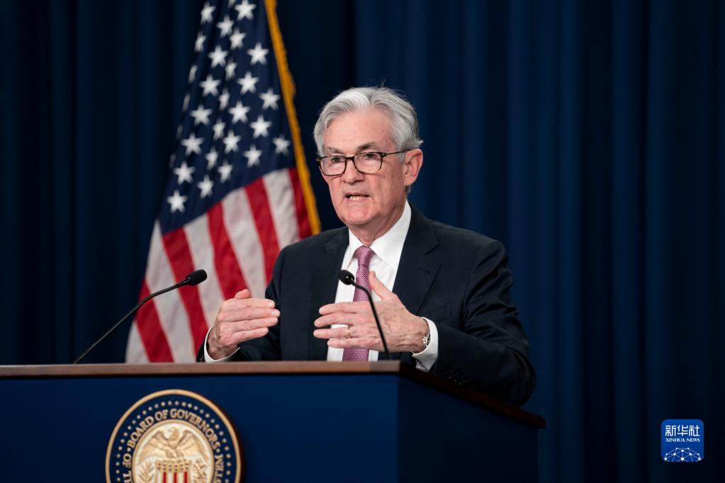 5月4日,在美國首都華盛頓,美國聯邦儲備委員會臨時主席鮑威爾出席新聞發布會。 新華社記者 劉杰 攝