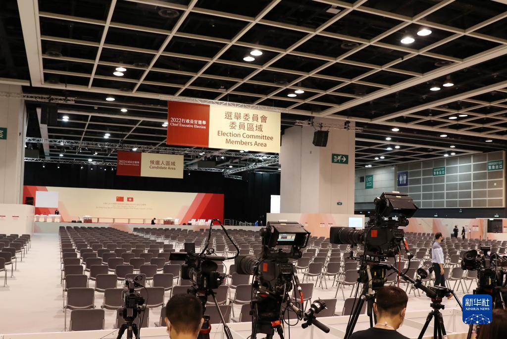 這是5月8日拍攝的香港會議展覽中心的中央點票站兼新聞中心。新華社記者 李鋼 攝