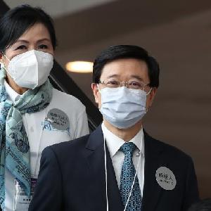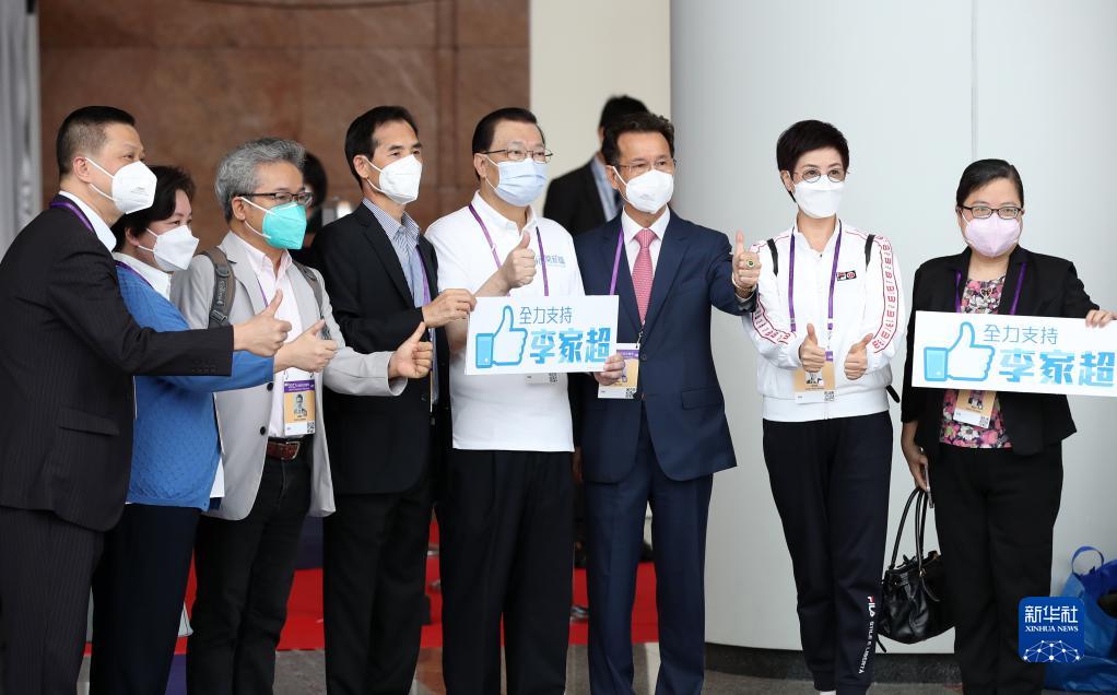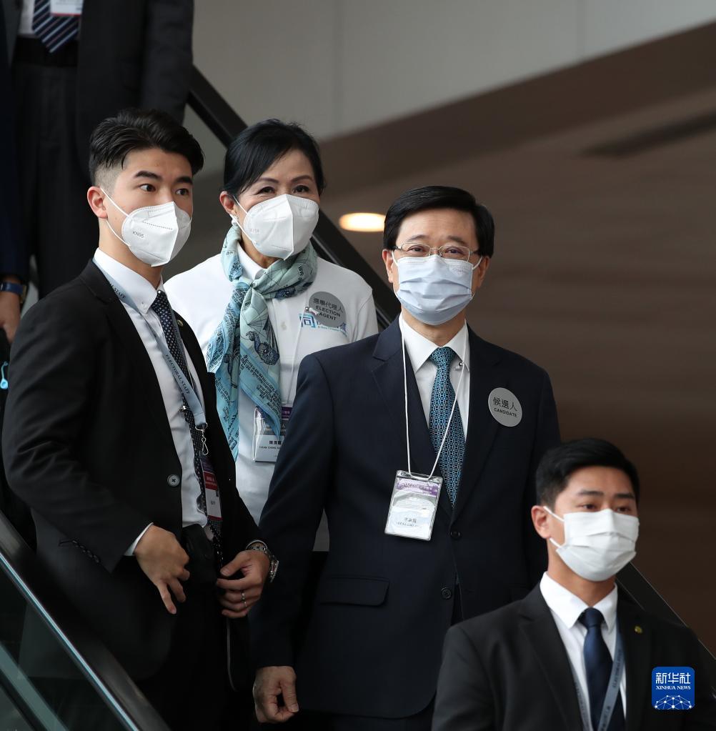 5月8日在香港會議展覽中心拍攝的候選人李家超(右二)。新華社記者 李鋼 攝