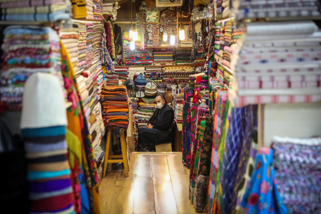 4月5日,商販坐在土耳其伊斯坦布爾大巴扎的店鋪內。新華社發(于納爾·恰姆攝)