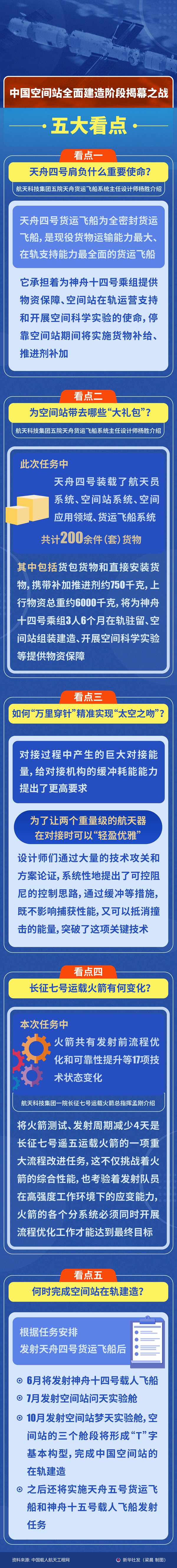 新華社北京5月10日電 題:天舟四號成功發射!中國空間站全面建造階段揭幕之戰五大看點