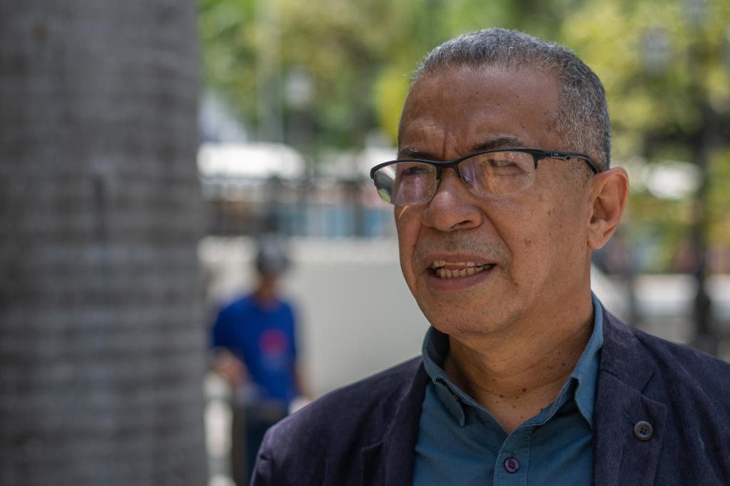 委內瑞拉全代會議員、經濟學家托尼·博薩接受新華社記者采訪。新華社記者徐燁攝