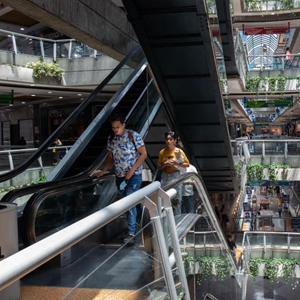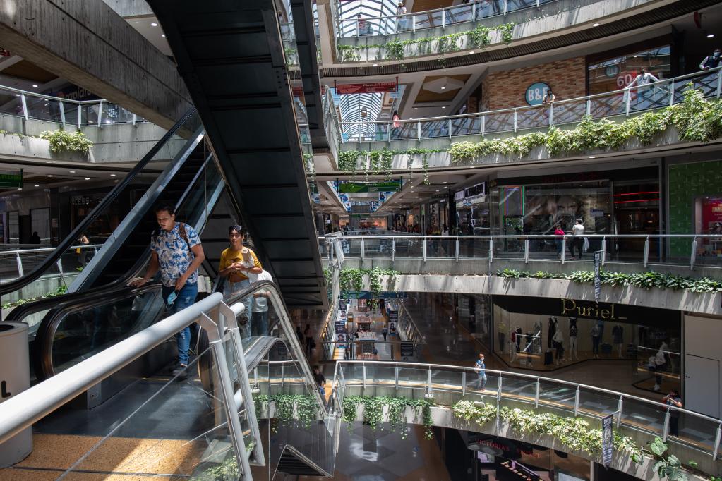 5月3日,委內瑞拉首都加拉加斯市中心,人們在商場購物。新華社記者徐燁攝
