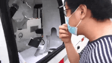 首先,記者打開手機上的核酸碼,在智能核酸采樣車的一個窗口完成掃碼。隨后,記者來到另一個窗口,與機器人“采樣員”面對面?!罢垙堊??!备鶕Z音提示,記者脫下口罩、張開嘴巴,機器人的右臂電爪抓起一根棉簽,慢慢地伸向喉嚨。觸碰到咽后壁后,機械臂就開始左三圈、右三圈地采集分泌物,旋轉動作很規范,沒有帶來不適感。