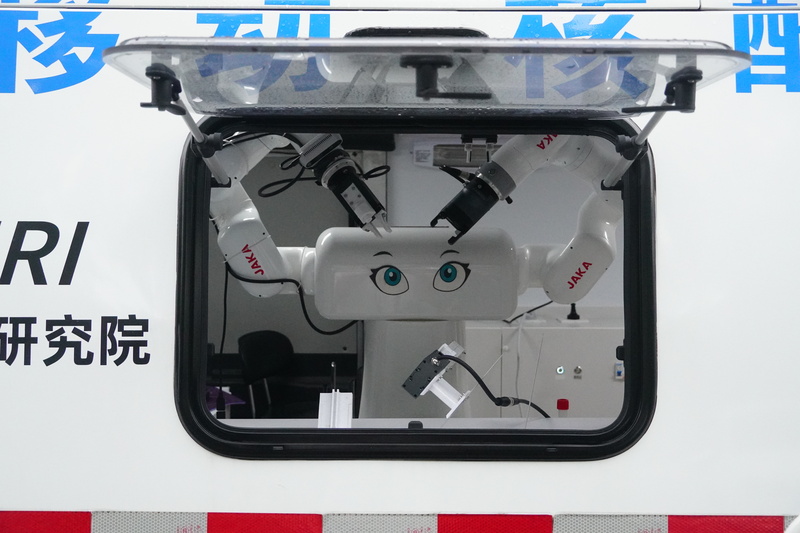 在市經信委的指導下,上海人工智能研究院智慧醫療中心首席科學家、上海交通大學機械與動力工程學院副研究員閆維新與節卡機器人技術團隊合作,在很短時間內研制出雙臂機器人及其配套設備?!拔覀冇玫臋C械臂是節卡MiniCobo協作機器人,電爪是從公司展廳的機器人身上拆下來的。其他設備大多是3D打印出來的,等完全復工后,我們再開模具、做機械加工?!遍Z維新指著核酸采樣車內的機器人說。