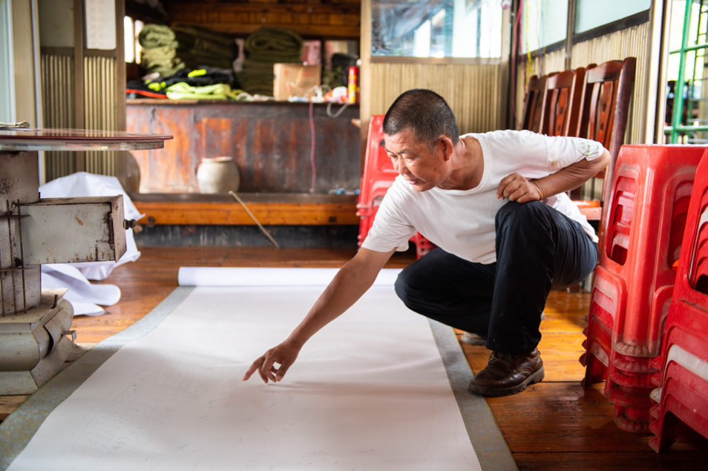 5月25日,何大明在展示自己手繪的洞庭湖江豚分布圖。新華社記者 陳思汗 攝