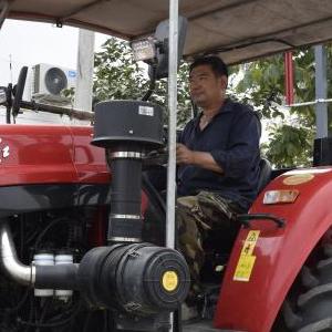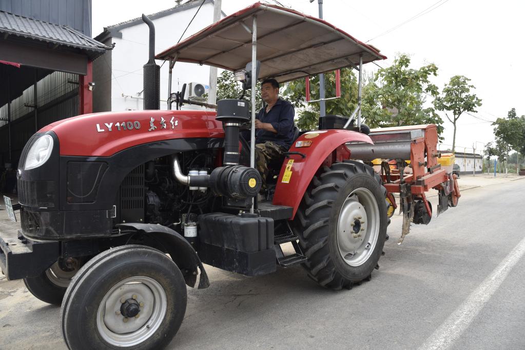 王志成正在試駕不久前新購置的玉米播種機。(受訪者供圖)