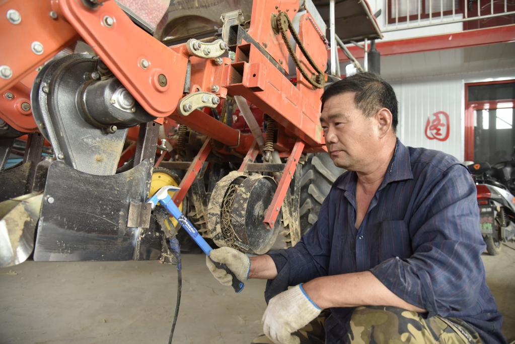 目前,王志成的合作社內擺放著各式各樣的農業機械,同時各種型號的扳手、鉗子、螺絲刀等也隨處可見。王志成說,幾乎每臺機械上都有他整合組裝的印記,如在小麥收割機上安裝開溝器、犁地機上加裝附犁等,最讓他得意的是玉米播種機上巧妙設置了清壟器。