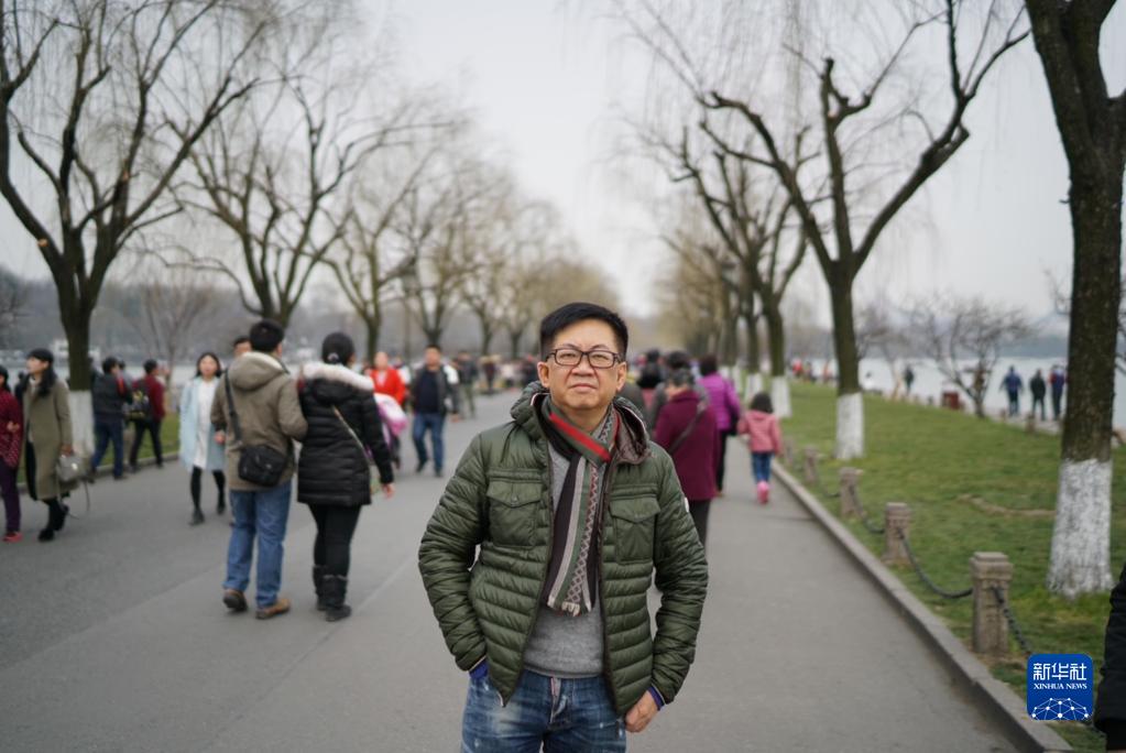 2016年2月,盧英杰在杭州西湖留影。新華社發(受訪者供圖)