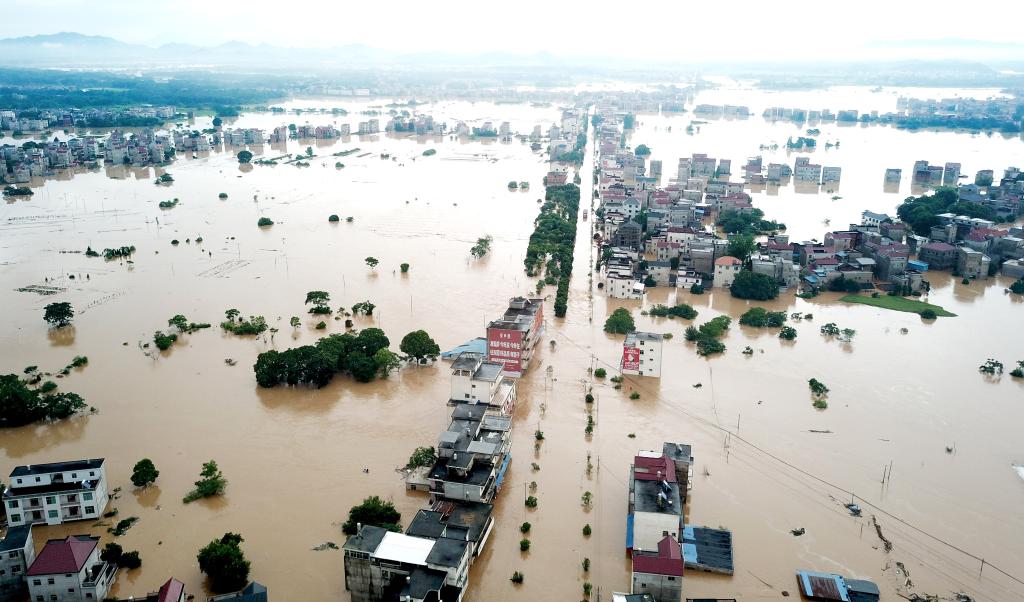 連續暴雨使江西省景德鎮市樂平市多個鄉鎮遭受洪澇災害。新華社記者 熊家林 通聯