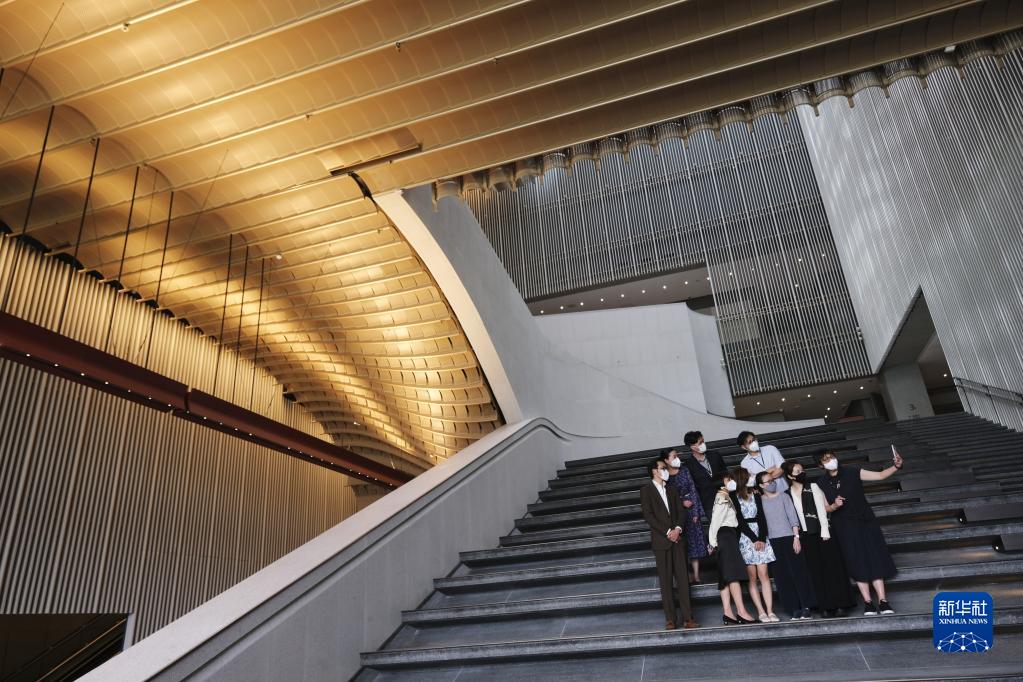 2022年6月17日,在香港故宮文化博物館,策展團隊部分人員在博物館大樓內自拍。 新華社記者 王申 攝