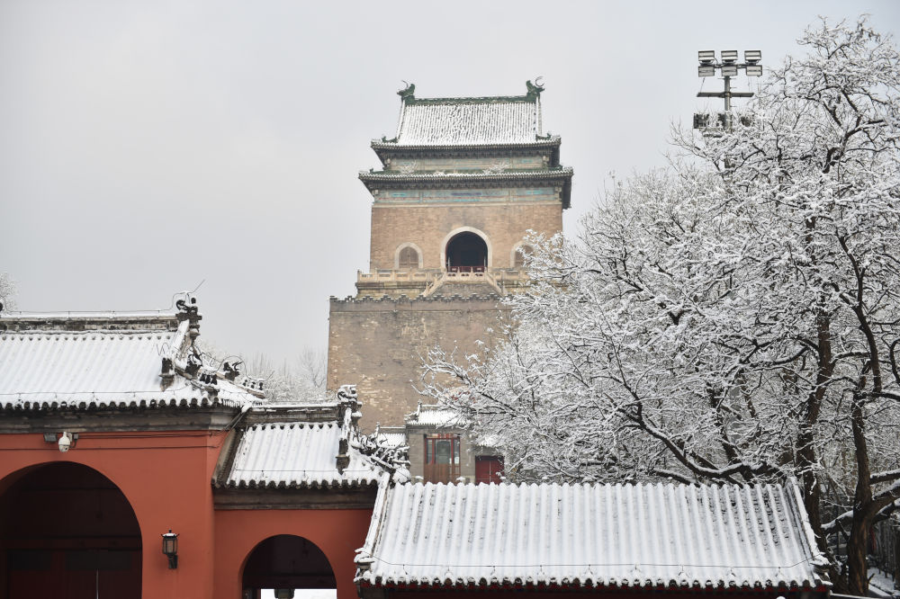 雪后的北京鐘樓(2020年1月6日攝)。新華社記者陳鐘昊攝