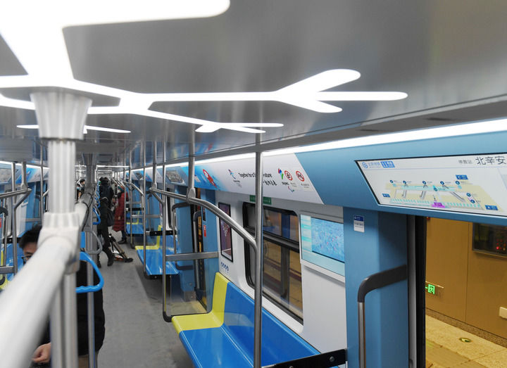 這是北京地鐵11號線西段(冬奧支線)列車車廂內部。建成開通后,11號線西段(冬奧支線)將加強中心城區與冬奧組委辦公區、冬奧比賽場館及訓練場館的聯系,提升冬奧會公共服務水平,促進新首鋼高端產業綜合服務區建設和區域經濟社會轉型發展(2021年12月24日攝)。新華社記者張晨霖攝