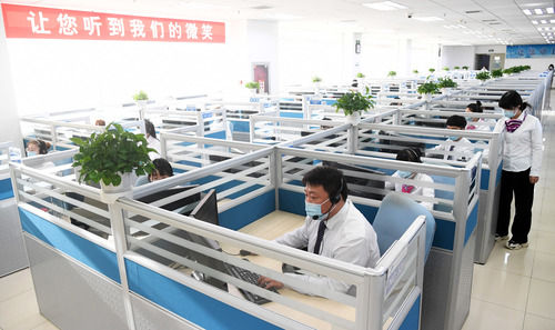 工作人員在位于北京亦莊的北京12345市民熱線服務中心工作(2020年12月31日攝)。新華社記者任超攝
