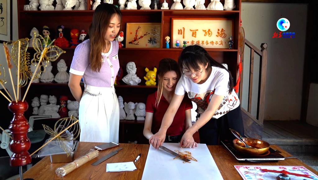 安吉麗娜對這種集工藝美術與美食于一體的獨特技藝非常感興趣。這個夏天,新華社記者與她一起前往銅陵五松糖畫傳承人的店里“拜師學藝”。