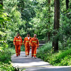 7月13日,在貴陽市長坡嶺國家級森林公園,村級林長郭?。ㄗ笠唬ьI護林員在公園里巡護。