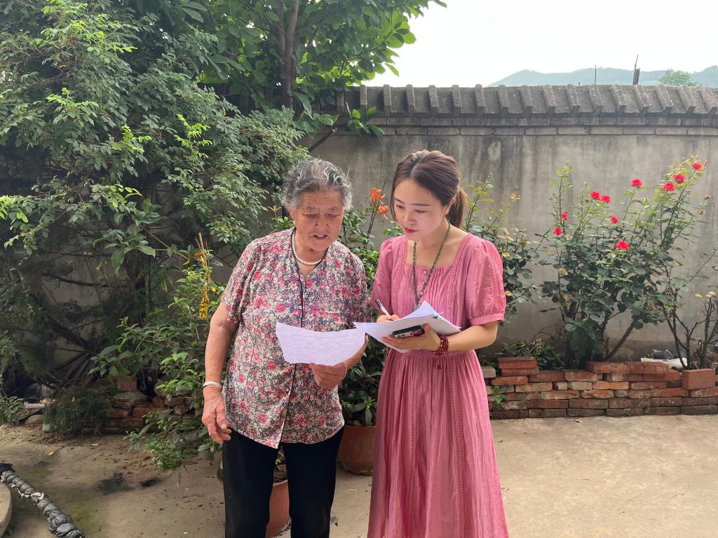 圖為王佳敏(右一)正在走訪入戶了解情況。(受訪者供圖)