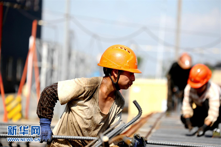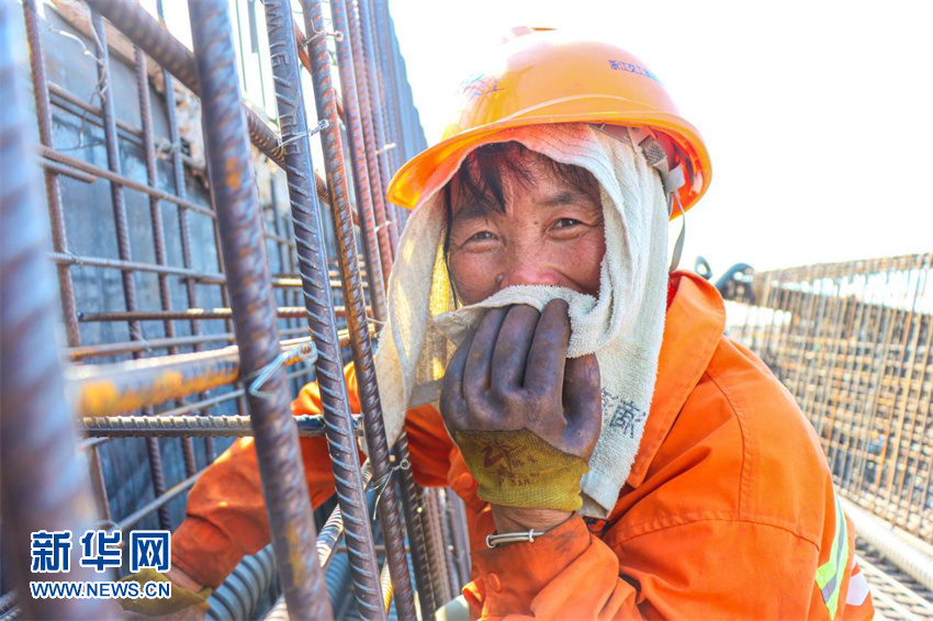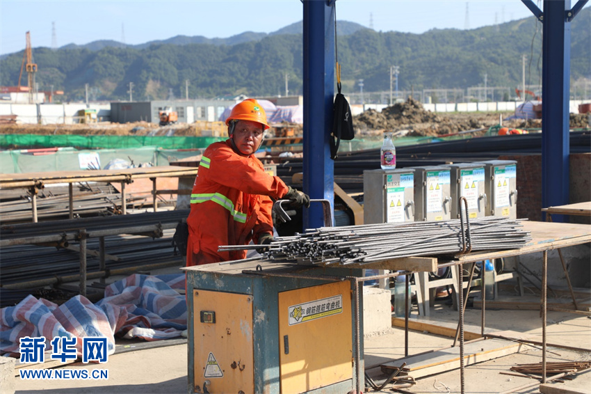 在浙江省交通集團杭甬復線寧波一期項目施工現場,S5合同段T梁預制場鋼筋班組工人吳定彬和他的工友們穿梭在施工現場,對鋼筋進行排序和捆綁。