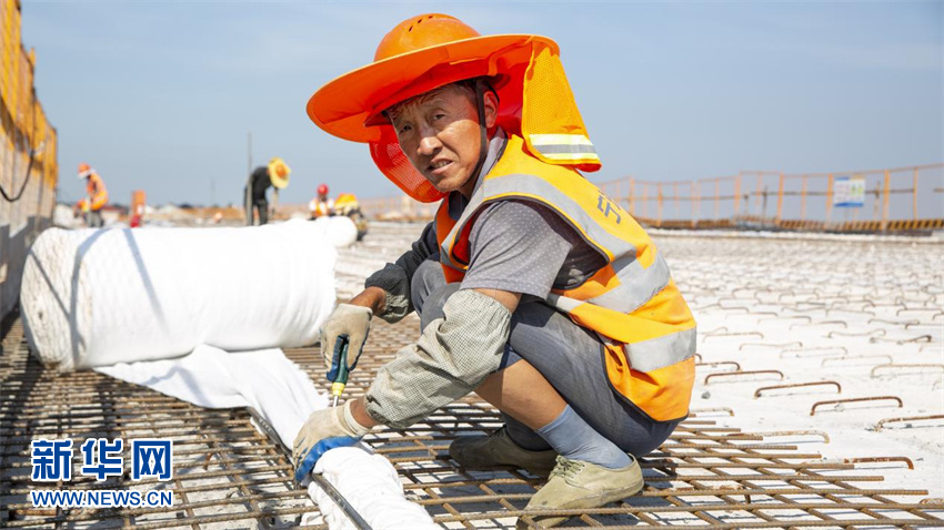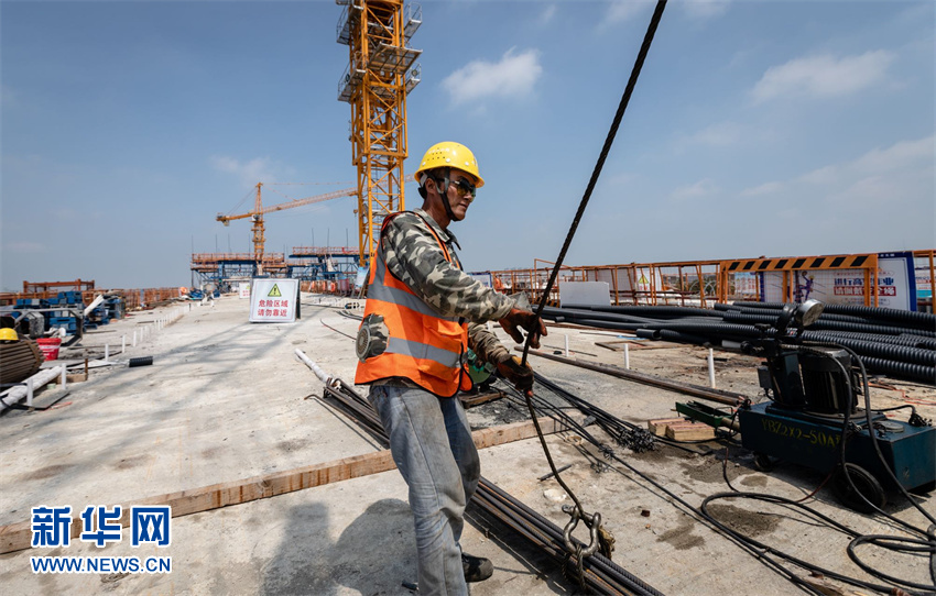 在臺州南鐵路智慧陸港新區項目建設現場,工人們在高溫下繼續戶外作業,爭分奪秒搶工期、加班加點趕進度。