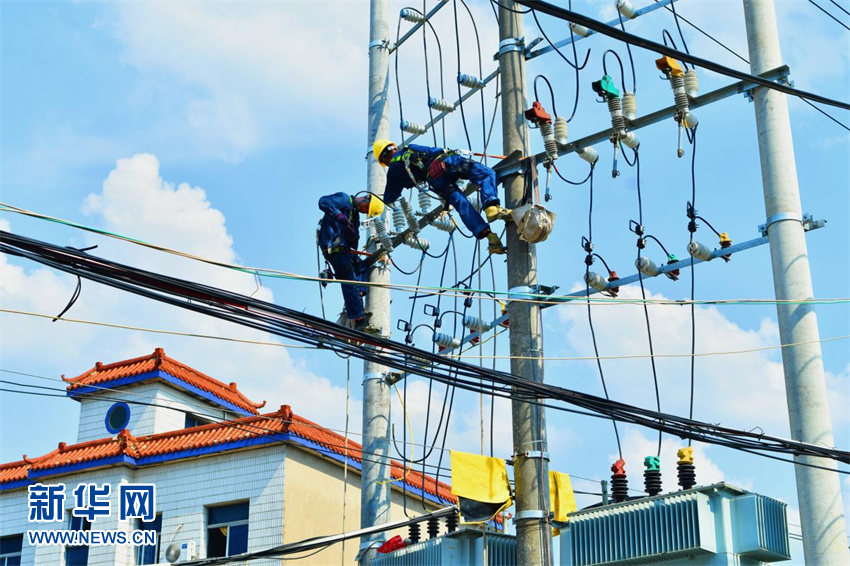 在杭州市臨平區塘棲鎮姚家灣,電力工人頂著烈日熱浪在電線桿上作業。他們是國網杭州市臨平區供電公司的員工。為應對此階段的用電高峰,該公司多措并舉,積極推動需求側負荷控制管理,開展迎峰度夏多場景演練,實行“能帶電就不停電”的施工作業方式,利用無人機、紅外測溫儀等設備排查線路隱患。