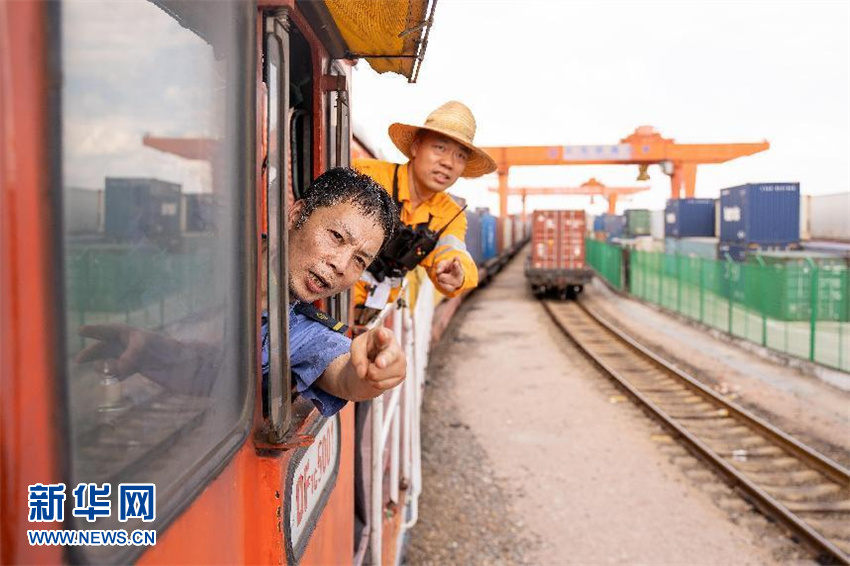 氣溫持續攀升,中歐班列熱度不減?!捌囱b師”們每天跟著火車跑來跑去,在車廂爬上爬下,保障“絲綢之路經濟帶”的大動脈車輪永不停歇。義烏西站13道線上,穿著長袖工裝、頭戴草帽、身背安全帶,全副武裝的調車長蔣誠陽配合司機,解編需要送去“拼裝”的貨車車輛。調車司機在蔣誠陽的配合下緩緩推進,甩掛連接精準到位,緊接著檢查、試拉、接風管、撤木鞋、松手閘等步驟一氣呵成,需要“拼裝”的車輛被緩緩拉走。