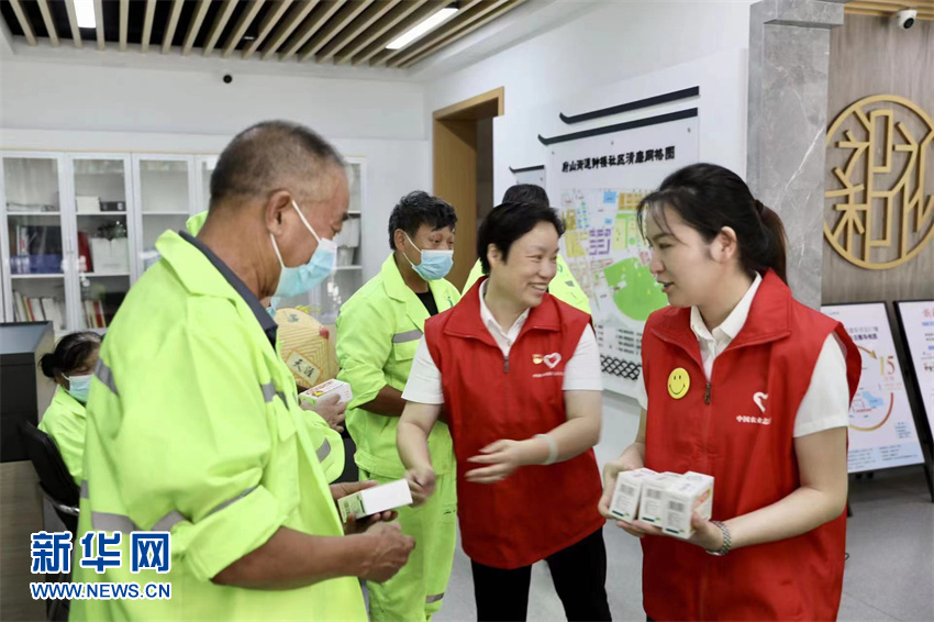 夏日亦有清涼的溫暖。農業銀行浙江衢州分行開展“向勞動者致敬”夏季送清涼系列慰問活動。先后來到衢州市柯城區府山街道鐘樓社區和衢江區浮石街道尺方間文化創意園施工現場,為環衛工人和工人送上礦泉水、涼茶,以及藿香正氣水、風油精等防暑用品,貢獻農行的一份“清涼”。