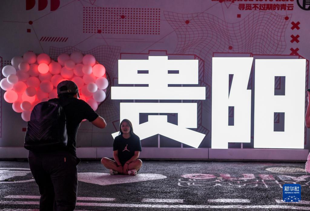 7月21日,游人在貴州省貴陽市南明區青云路“青云市集”里留影。
