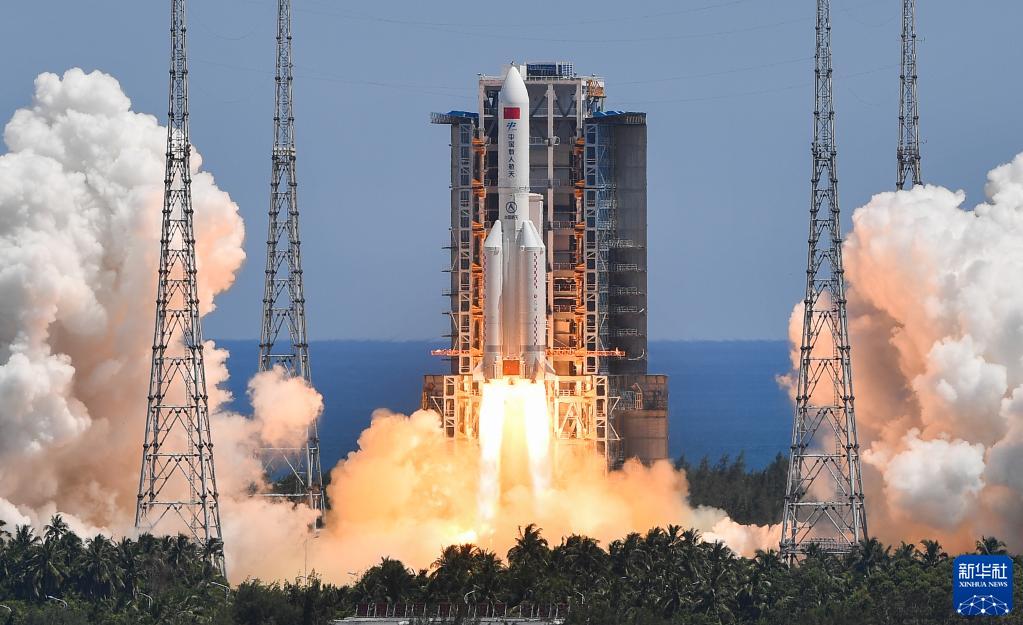 7月24日,搭載問天實驗艙的長征五號B遙三運載火箭在文昌航天發射場成功發射。新華社記者 楊冠宇 攝