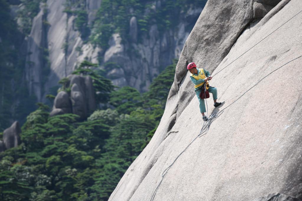 此后,在黃山的懸崖峭壁間,游客時常能看到一位頭戴安全帽、身系登山繩的黝黑漢子像“蜘蛛俠”一樣身形矯健地穿梭于山間。