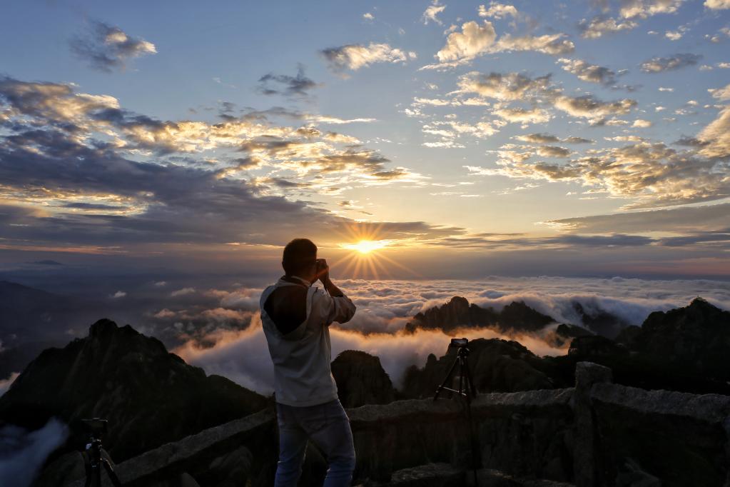 游客拍攝黃山云海(6月2日攝)。新華社發(梅建 攝)