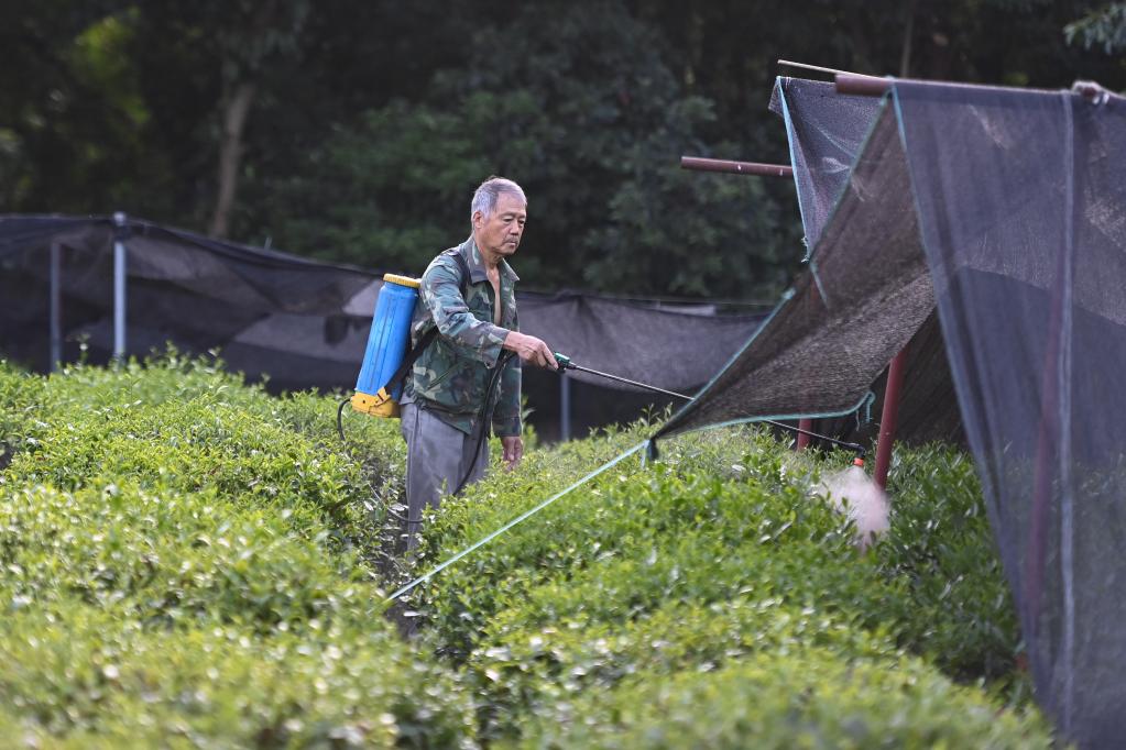 雙峰村茶農為茶樹噴灑水分和肥料。新華社記者 黃宗治 攝