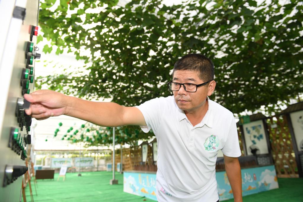 紹興市上虞區蓋北鎮野藤葡萄種植基地工作人員開啟遮陽網。新華社記者 翁忻旸 攝