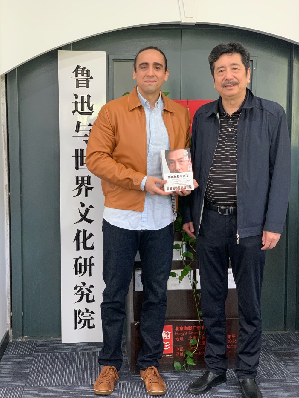 2021年9月,西內迪諾(左)和周令飛(右)在魯迅與世界文化研究院合影。(受訪者提供)