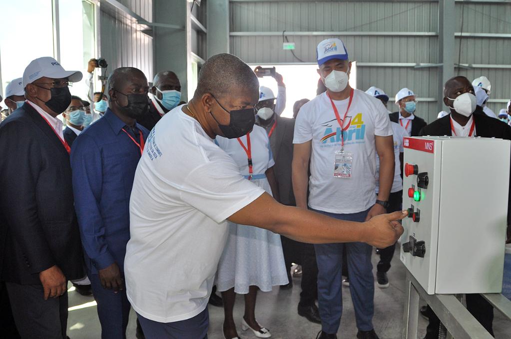 2022年4月4日,安哥拉總統洛倫索在庫內內省按下抗旱項目一期工程泵機啟動鍵。新華社發(許昆鵬攝)