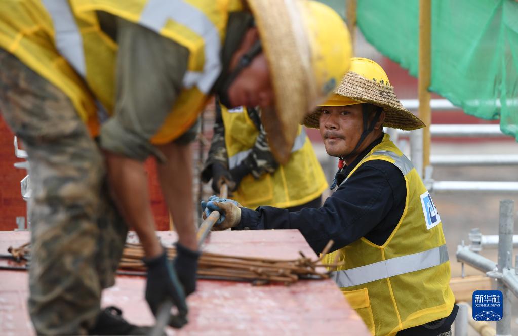9月20日,工人在南寧國際鐵路港電商物流區施工。