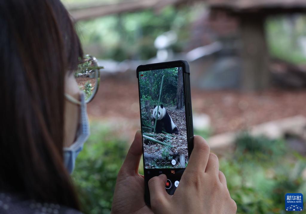 9月21日,游客在成都大熊貓繁育研究基地內參觀。