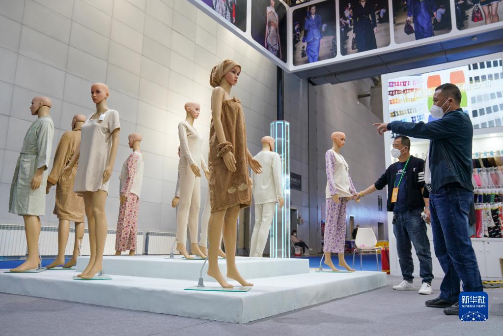 9月21日,在第七屆中國-亞歐博覽會上,參觀者在參觀新疆彩棉制品。