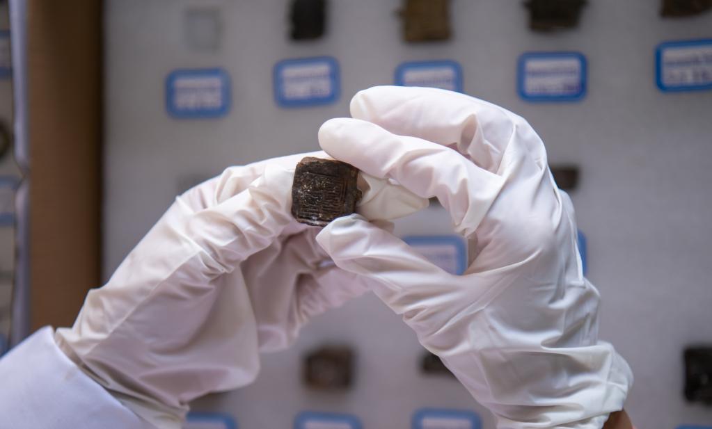 考古工作者在檢查云南河泊所遺址出土的封泥(9月21日攝)。新華社記者江文耀攝