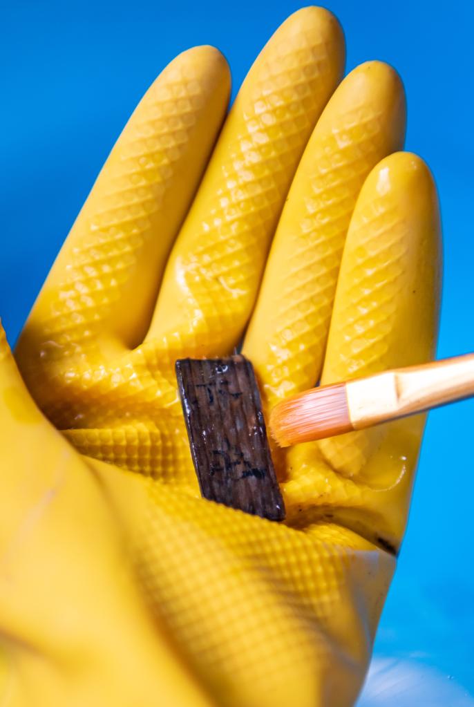 考古工作者在清理云南河泊所遺址出土的簡牘(9月21日攝)。新華社記者江文耀攝